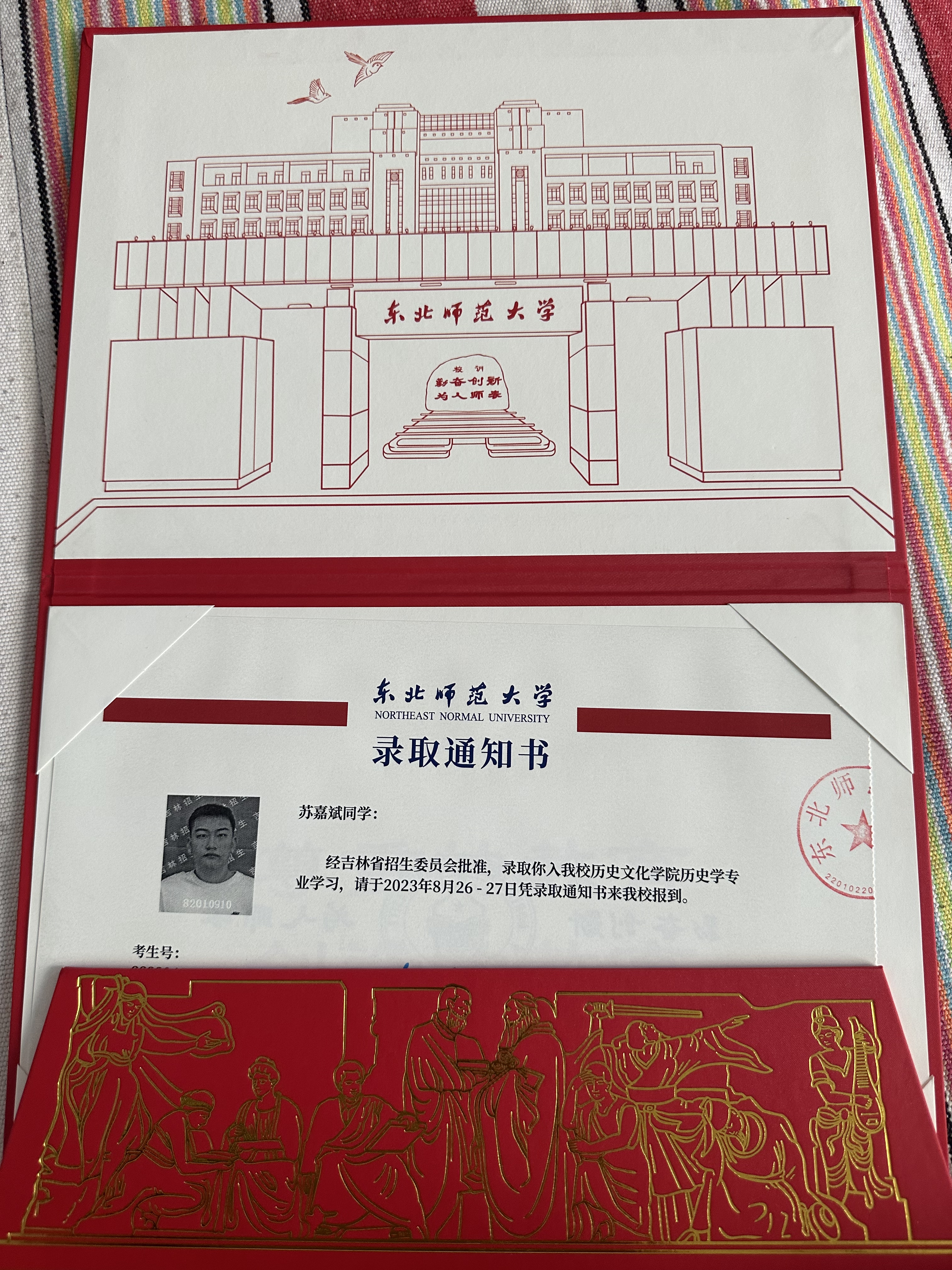 “如果说高考是小说里动人心弦的情节,那么录取就是大团圆式的结局。当我小心翼翼打开录取通知书的那一刻,激动的心情难以形容,真实地感觉到‘梦中情校’离我如此之近。”今年7月,苏嘉斌如愿被东北师大历史文化学院历史学专业录取,实现了自己的师大梦、历史梦。而他与东师的不解之缘,还要从十年前说起。
